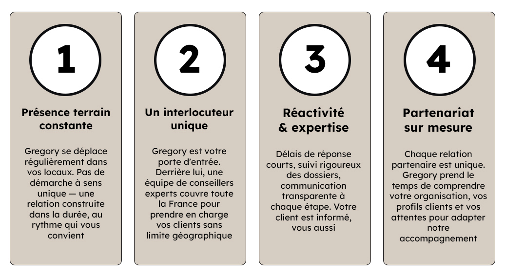 Devenir partenaire Émérite, c'est simple et structuré. Gregory vous accompagne à chaque étape pour que la mise en place soit rapide, fluide et sans friction pour vos équipes.